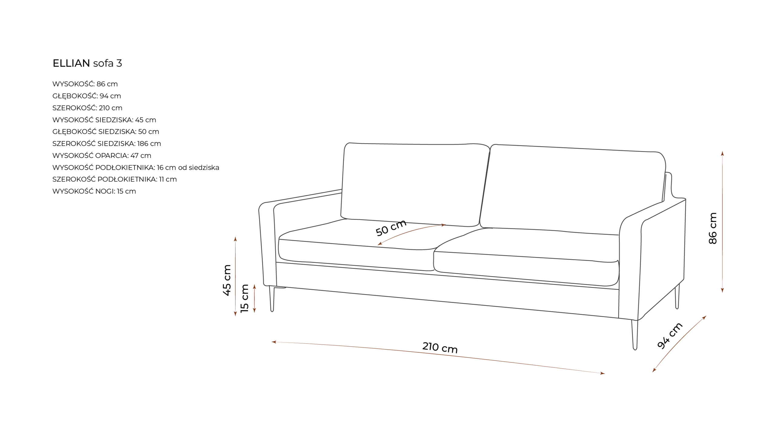 The ELLIAN 3-seater sofa was created for interiors where both comfort and modern aesthetics are paramount. Its simple, geometric shape blends perfectly with loft and modernist styles, bringing harmony and order to the living room. This sofa provides a space for everyday relaxation, family gatherings, and shared moments in an elegant, contemporary design.